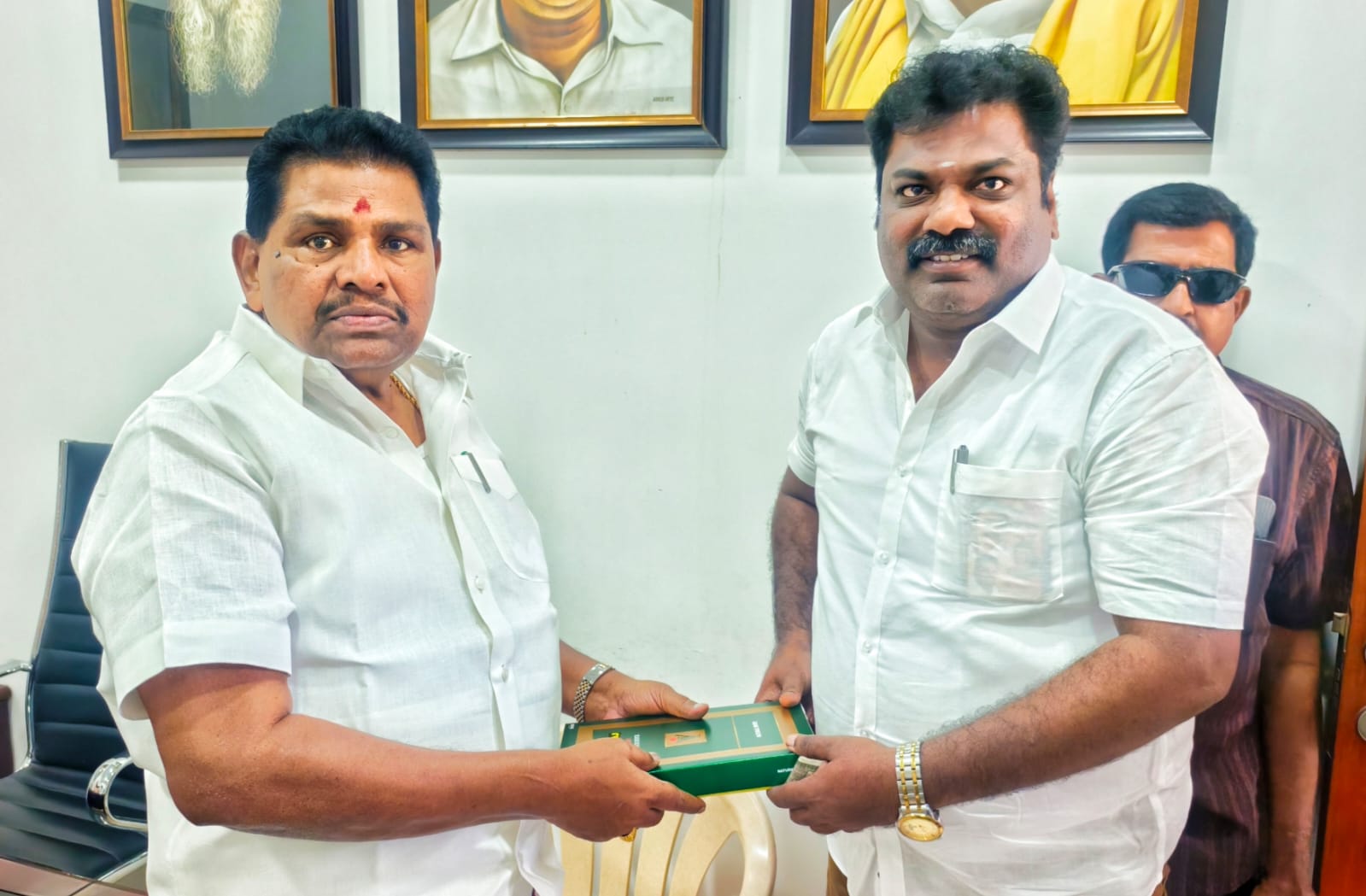 அமைச்சர் அனிதா ராதாகிருஷ்ணனிடம் திமுக ஒன்றிய செயலாளர் இளையராஜா வாழ்த்து பெற்றார்.