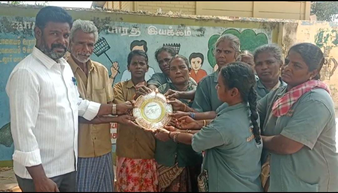 இந்நிலையில் பரிசு பெற்ற ஊராட்சி மன்ற தலைவர் அந்த பரிசினை தன்னோடு அலுவலகத்தில் பணிபுரியும் தூய்மை பணியாளர்களுக்கு சமர்ப்பித்தார்