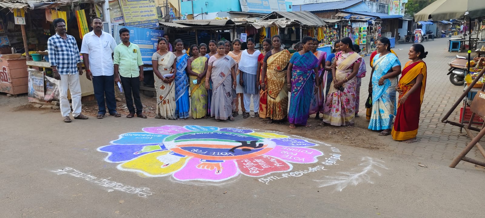 திருவாரூர் மாவட்ட ஆட்சியர் சாருஸ்ரீ உத்தரவின் பேரில் வாக்காளர் விழிப்புணர்வு பேரணி, வாக்காளர் கையெழுத்து இயக்கம் உள்ளிட்ட பல்வேறு பணிகள் மேற்கொள்ளப்பட்டு வருகிறது. அதன் ஒரு கட்டமாக 29- நாகப்பட்டினம் நாடாளுமன்ற தொகுதி 169- நன்னிலம் சட்டமன்ற தொகுதிக்கு உட்பட்ட, வலங்கைமான் அருகே உள்ள ஆலங்குடி குரு ஸ்தலம் அருகில் 100%. வாக்குப்பதிவு வலியுறுத்தி ரங்கோலி மூலம், வாக்காளர்களுக்கு விழிப்புணர்வு செய்யப்பட்டது. இந்நிகழ்ச்சியில் வலங்கைமான் வட்டாட்சியர் ரஷ்யா பேகம், தேர்தல் துணை வட்டாட்சியர் ரவி, மண்டல துணை வட்டாட்சியர் ஆனந்தன், வருவாய் ஆய்வாளர் பிரபாகரன், ஆலங்குடி கிராம நிர்வாக அலுவலர் ஹரிகர சுதன், வட்டார மேலாளர் தனலட்சுமி, வட்டார ஒருங்கிணைப்பாளர் மற்றும் மகளிர் சுய உதவிக் குழு உறுப்பினர்கள் உடன் இருந்தனர்.