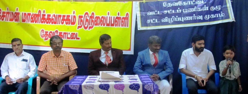 தேவகோட்டை – சிவகங்கை மாவட்டம் தேவகோட்டை சேர்மன் மாணிக்கவாசகம் நடுநிலைப் பள்ளியில் சட்ட விழிப்புணர்வு முகாம் நடைபெற்றது.