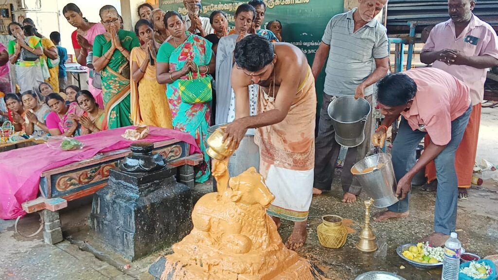 சீர்காழி நாகேஸ்வரமுடையார் கோயிலில் பங்குனி மாத பிரதோஷம் நந்தி பகவானுக்கு சிறப்பு அபிஷேகம் ஏராளமானோர் சிறப்பு வழிபாடு :-