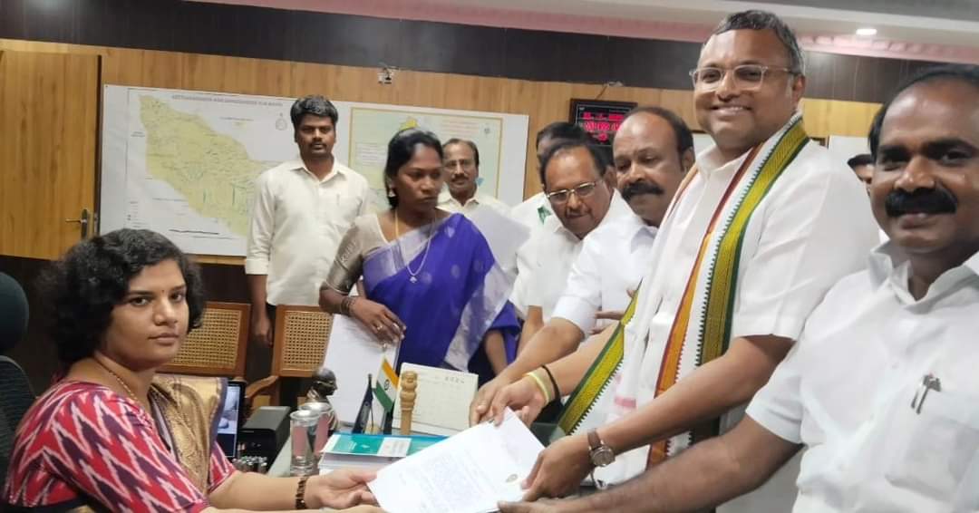 சிவகங்கை மாவட்ட ஆட்சியர் அலுவலகத்தில் காங்கிரஸ் கட்சியின் சிவகங்கை பாராளுமன்ற தொகுதி வேட்பாளர் கார்த்தி சிதம்பரம் தனது வேட்பு மனுவை மாவட்ட தேர்தல் அதிகாரியும், மாவட்ட ஆட்சியருமான ஆஷா அஜித்திடம் தாக்கல் செய்த போது இந்நிகழ்வில் அமைச்சர்கள் KR.பெரியகருப்பன், ரகுபதி, மெய்யநாதன்,MLA தமிழரசி ரவிக்குமார் ஆகியோர் கலந்து கொண்டனர்