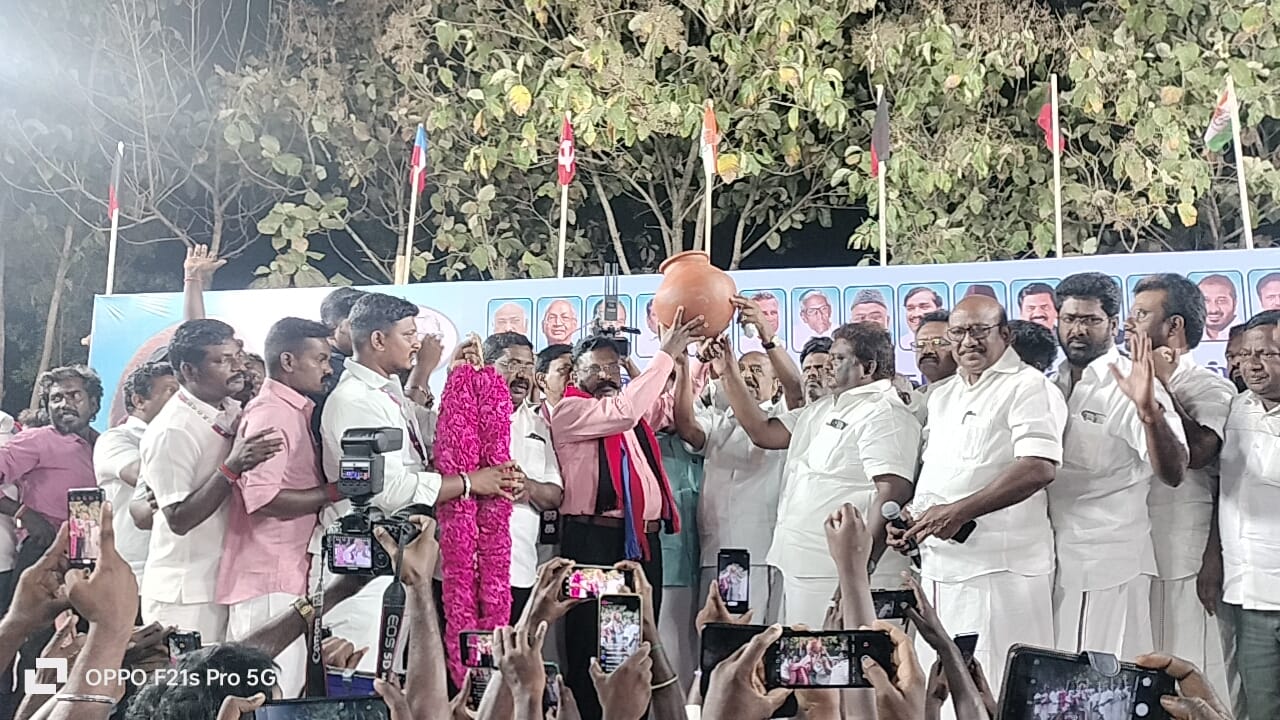 இதில் கம்னியுஸ்ட் கட்சியின் நிர்வாகிகள் ராமநாதன், இளங்கோவன், இந்திய தேசிய காங்கிரஸ் மாவட்ட தலைவர் சங்கர், திமுக கழகத்தின் நிர்வாகி பெருநற்கிள்ளி உள்ளிட்ட இந்தியா கூட்டணி கட்சியின் மாவட்ட மாநில ஒன்றிய நிர்வாகிகள் தொண்டர்கள் என 5000 க்கும் மேற்பட்டோர் கலந்து கொண்டனர்.