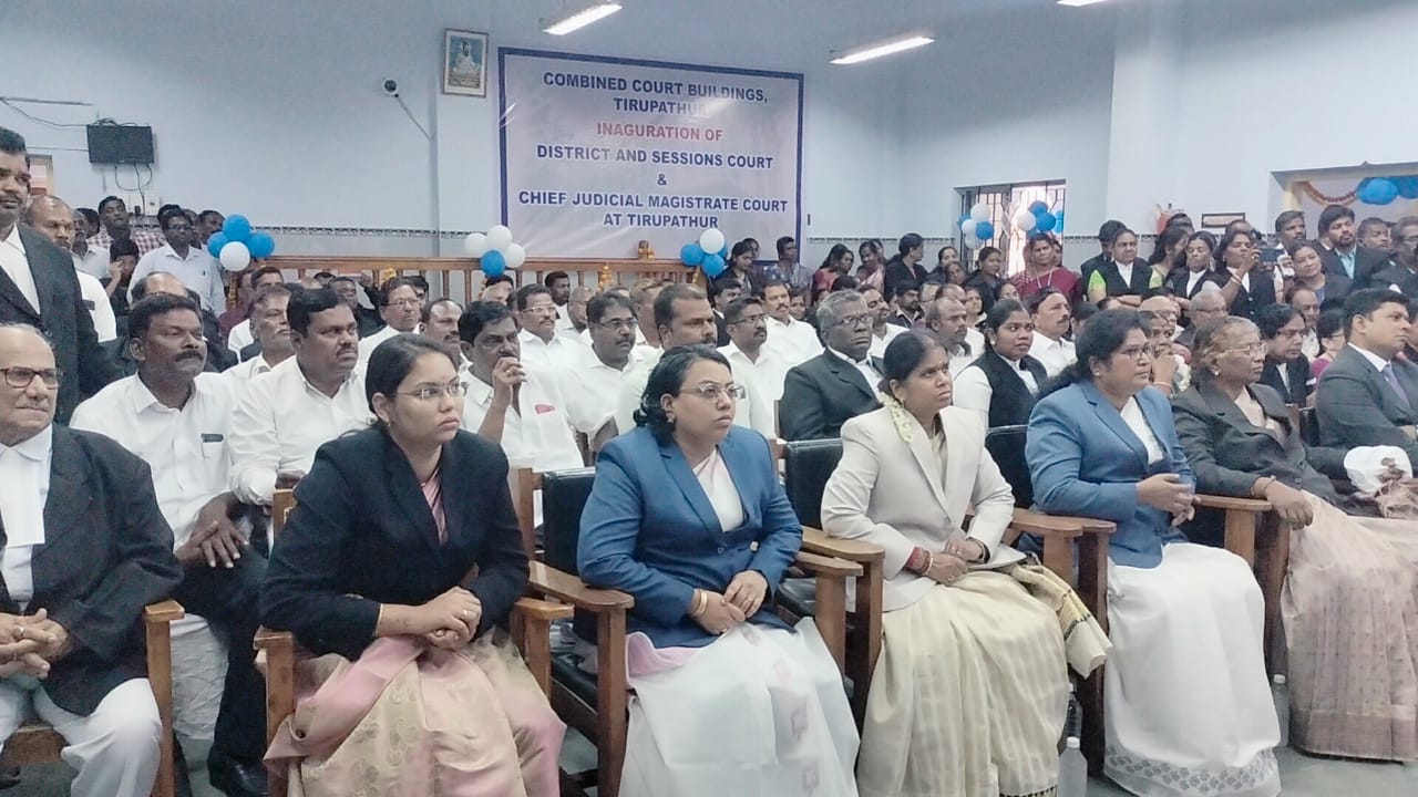 திருப்பத்தூர் மாவட்டம் திருப்பத்தூர் நகராட்சி ரயில்வே ஸ்டேஷன் ரோடு பகுதியில் உள்ள திருப்பத்தூர் ஒருங்கிணைந்த நீதிமன்ற வளாகத்தில் வெள்ளிக்கிழமை இன்று காலை 10.30 மணி அளவில் திருப்பத்தூர் மாவட்ட நீதிமன்றம் திறப்பு விழா நடைபெற்றது.