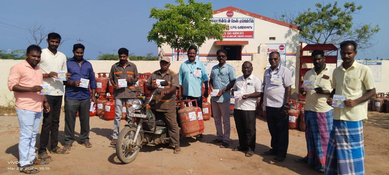 இதன் தொடர்ச்சியாக தரங்கம்பாடி வட்டத்தில் உள்ள கேஸ் ஏஜென்சிகள் மூலம் வீடுகளுக்கு வினியோக. செய்யப்படும் எரிவாயு உருளையில் என் வாக்கு என் உரிமை என்ற வாசகம் பதிக்கப்பட்ட துண்டு பிரசுரங்கள் ஒட்ப்பட்டு விழிப்புணர்வு பிரச்சாரம் மேற்கொள்ளப்பட்டது.
