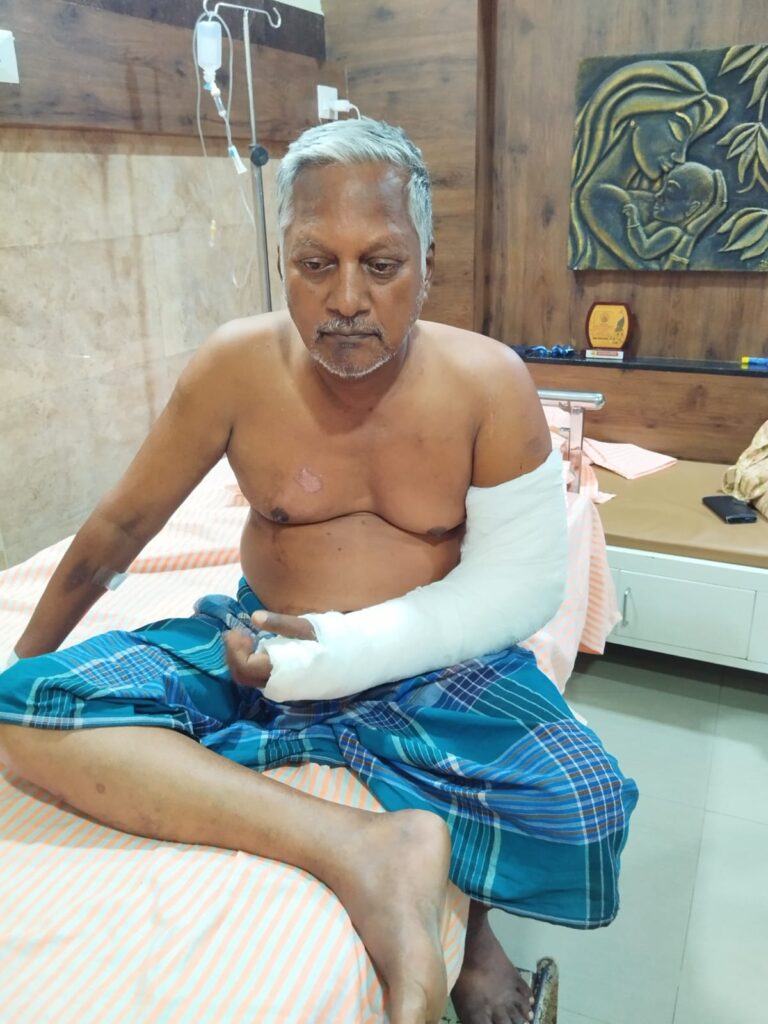 இதில் வக்கீல் சந்திரசேகரனின் இடது கை முறிந்து காயமடைந்த நிலையில்