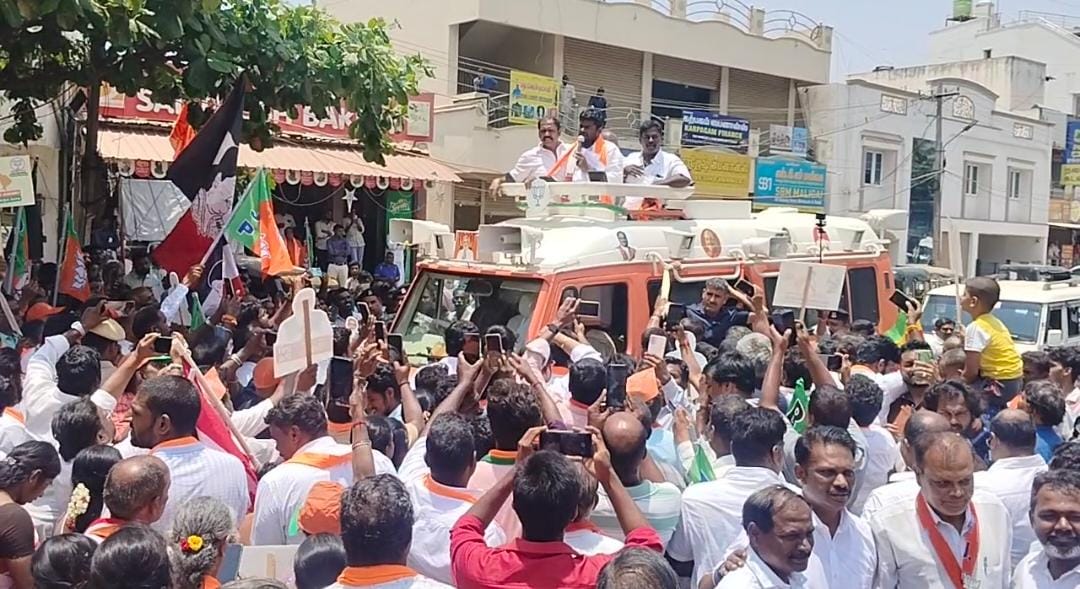முன்னதாக பிரச்சாரம் செய்ய வந்த பாஜக மாநில தலைவர் அண்ணாமலைக்கு இடையர்பாளையம் ஶ்ரீ தாய் மூகாம்பிகை அம்மன் கோவில் சார்பாக கும்பாபிஷேக அருள் பிரசாதம் வழங்கப்பட்டது.