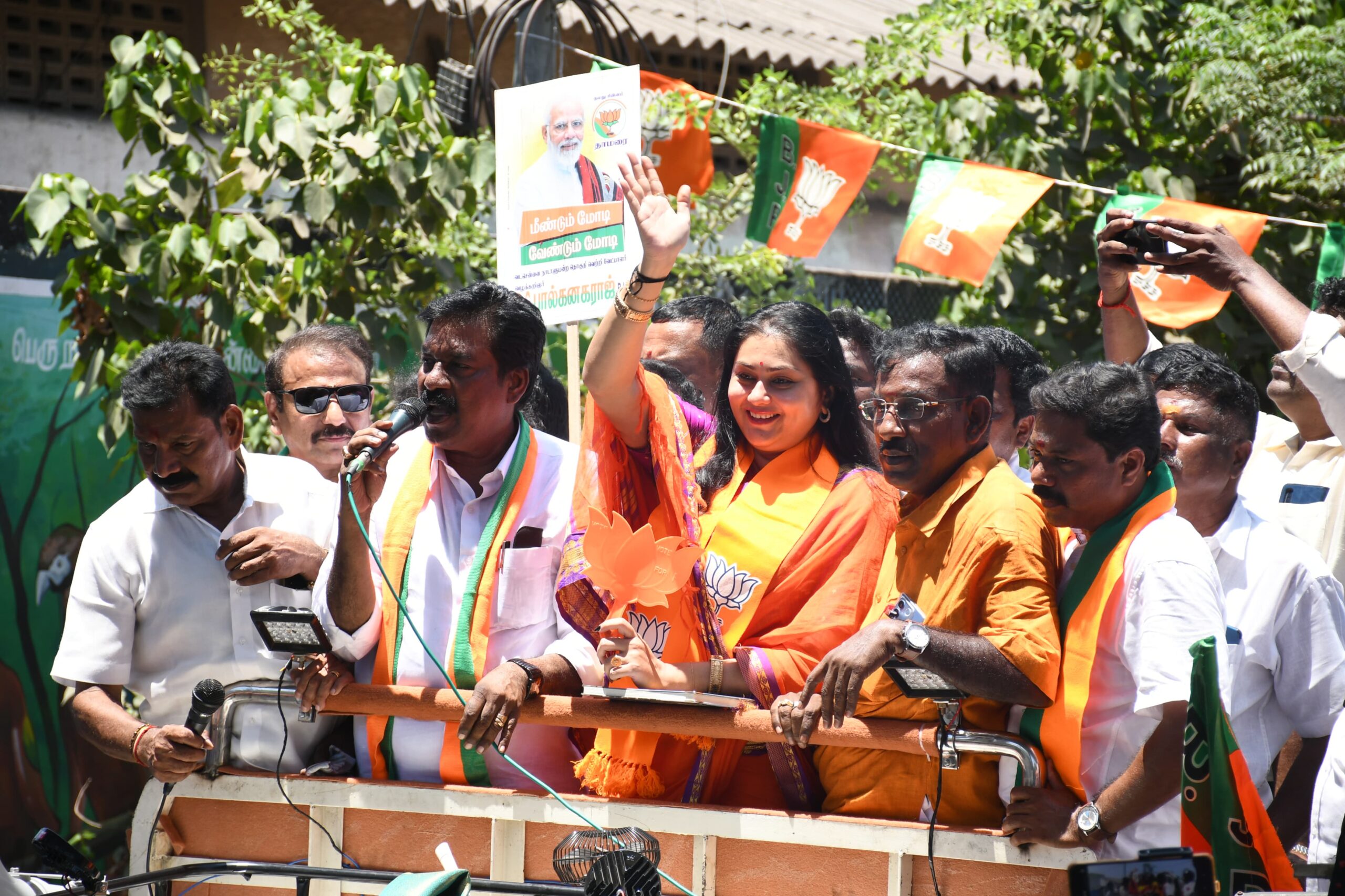 திருவொற்றியூர், பெரியார் நகரில், வடசென்னை பா.ஜ., வேட்பாளர் பால்கனகராஜை ஆதரித்து, பா.ஜ., தேசிய செயற்குழு உறுப்பினர் நடிகை நமீதா, நேற்று மதியம், பிரசாரம் மேற்கொண்டார்.