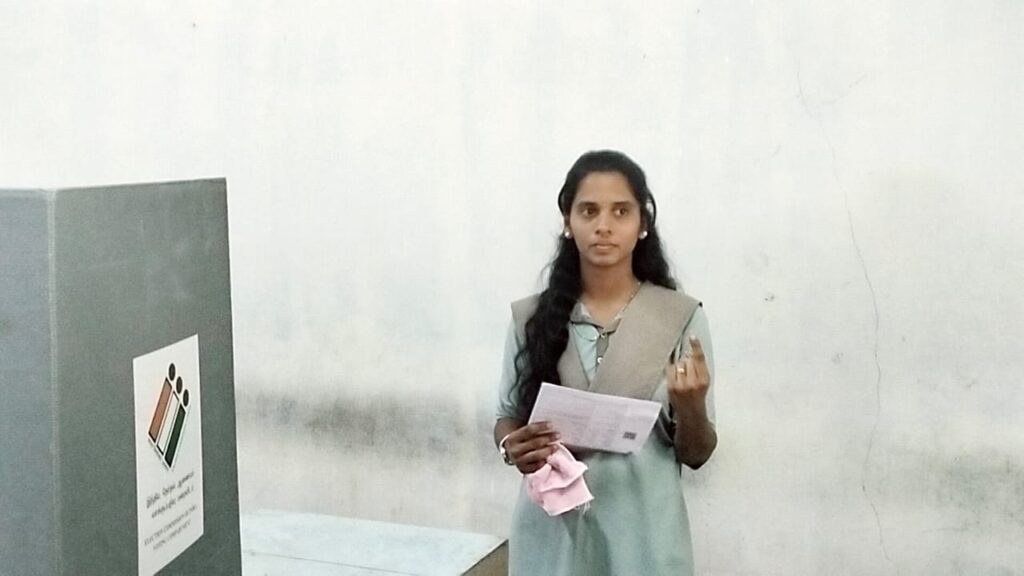 மேலும் மாணவிகள் அனைவரும் 100 சதவீதம் வாக்களிப்போம் என்ற உறுதிமொழியை எடுத்துக் கொண்டனர்.