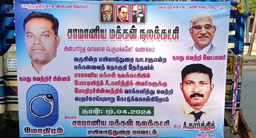 சாமானிய மக்கள் நலக் கட்சியின் மயிலாடுதுறை நாடாளுமன்ற மக்களவைத் தொகுதி வேட்பாளர்..