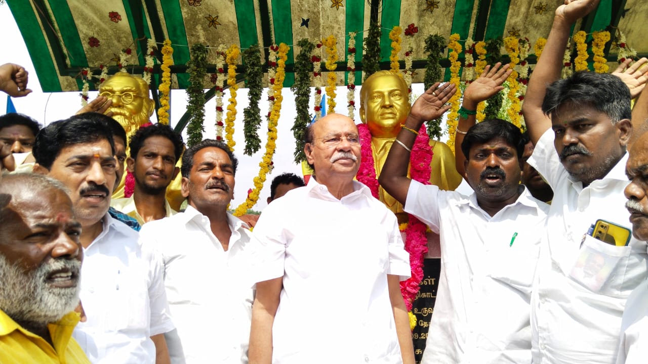 தைலாபுரம் தோட்டத்தில் அம்பேத்கரின் சிலைக்கு மாலை அணிவித்த பாமக நிறுவனர்