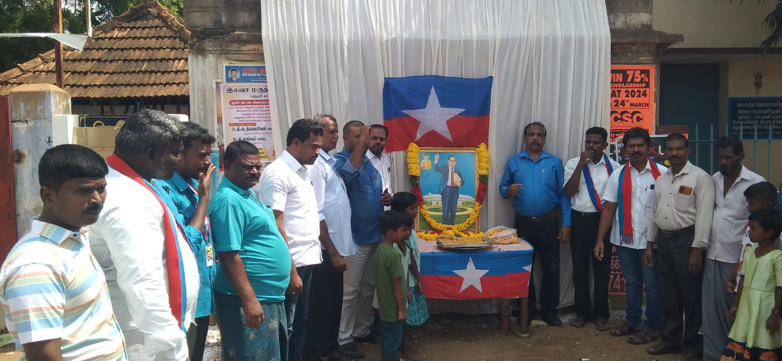 டாக்டர் அம்பேத்கார்திருவுருவ படத்திற்கு மாலை அணிவித்து மலர் தூவி வீரவணக்கம் செலுத்தினார்கள்.