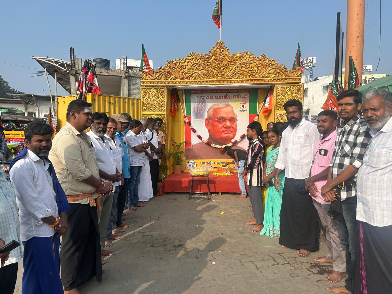 மேட்டுப்பாளையம் நகர பாரதிய ஜனதா கட்சி சார்பில் முன்னாள் பாரத பிரதமர் வாஜ்பாய் அவர்களின் பிறந்த நாள் விழா மேட்டுப்பாளையம் பேருந்து நிலையம் முன்பு நடைபெற்றது.