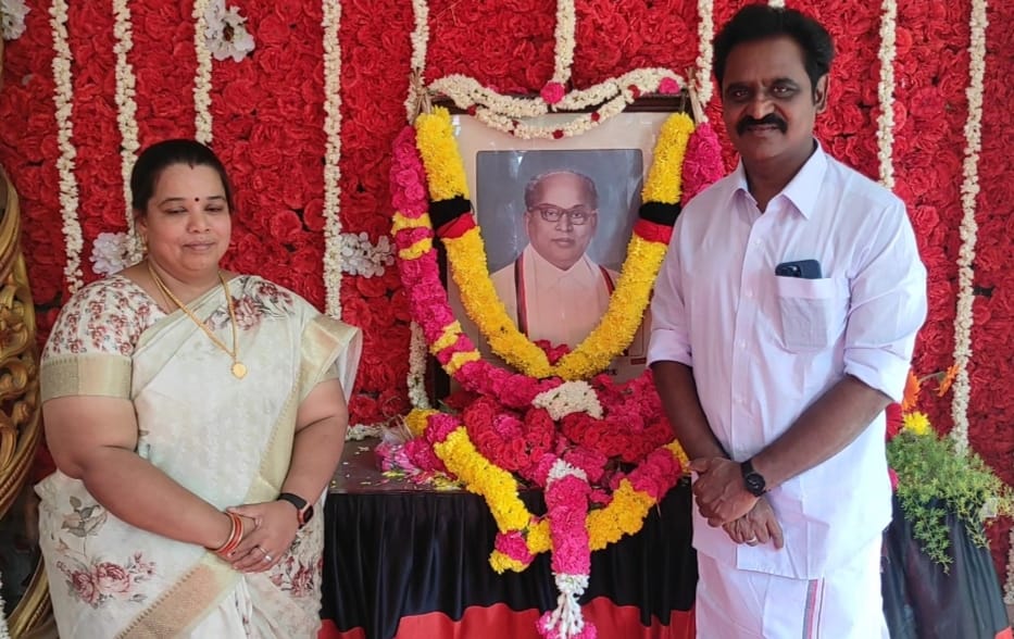 காஞ்சிபுரம் சட்டமன்ற உறுப்பினர் சி.வி.எம்.பி.எழிலரசன் ஆகியோர் முன்னாள் அமைச்சர் சி.வி.எம்.அண்ணாமலை அவர்களின் திருவுருவ படத்திற்கு மாலை அணிவித்து மலர்தூவி மரியாதை செலுத்தினார்.
