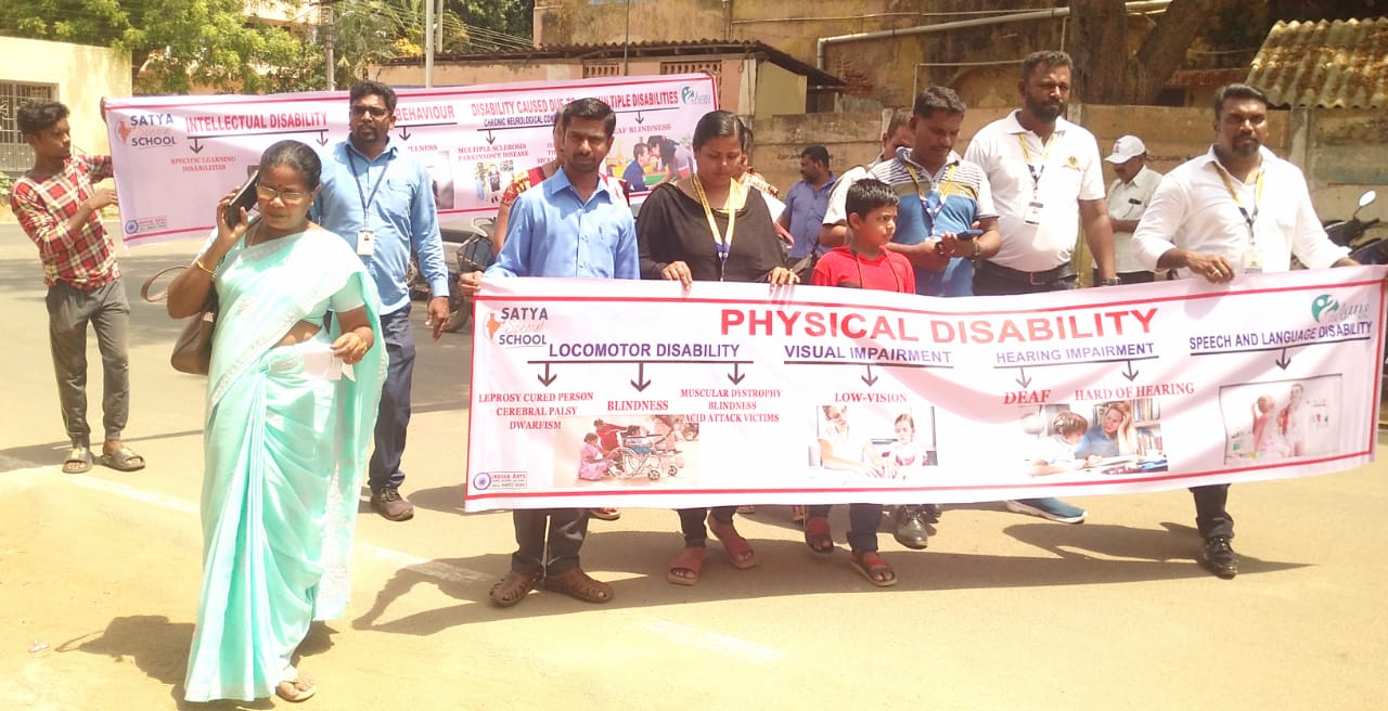 காரைக்கால் மற்றும் புதுச்சேரியில் இயங்கி வரும் சத்யா மாற்றுத்திறனாளி சிறப்பு பள்ளி சார்பில் நடந்த பேரணிக்கு தலைமை பயிற்சியாளர் விஜயா சந்திரசேகர் தலைமை தாங்கினார். பேரணியை தஞ்சாவூர் மாநகராட்சி மேயர் சண்.இராமநாதன் தொடங்கி வைத்தார்.