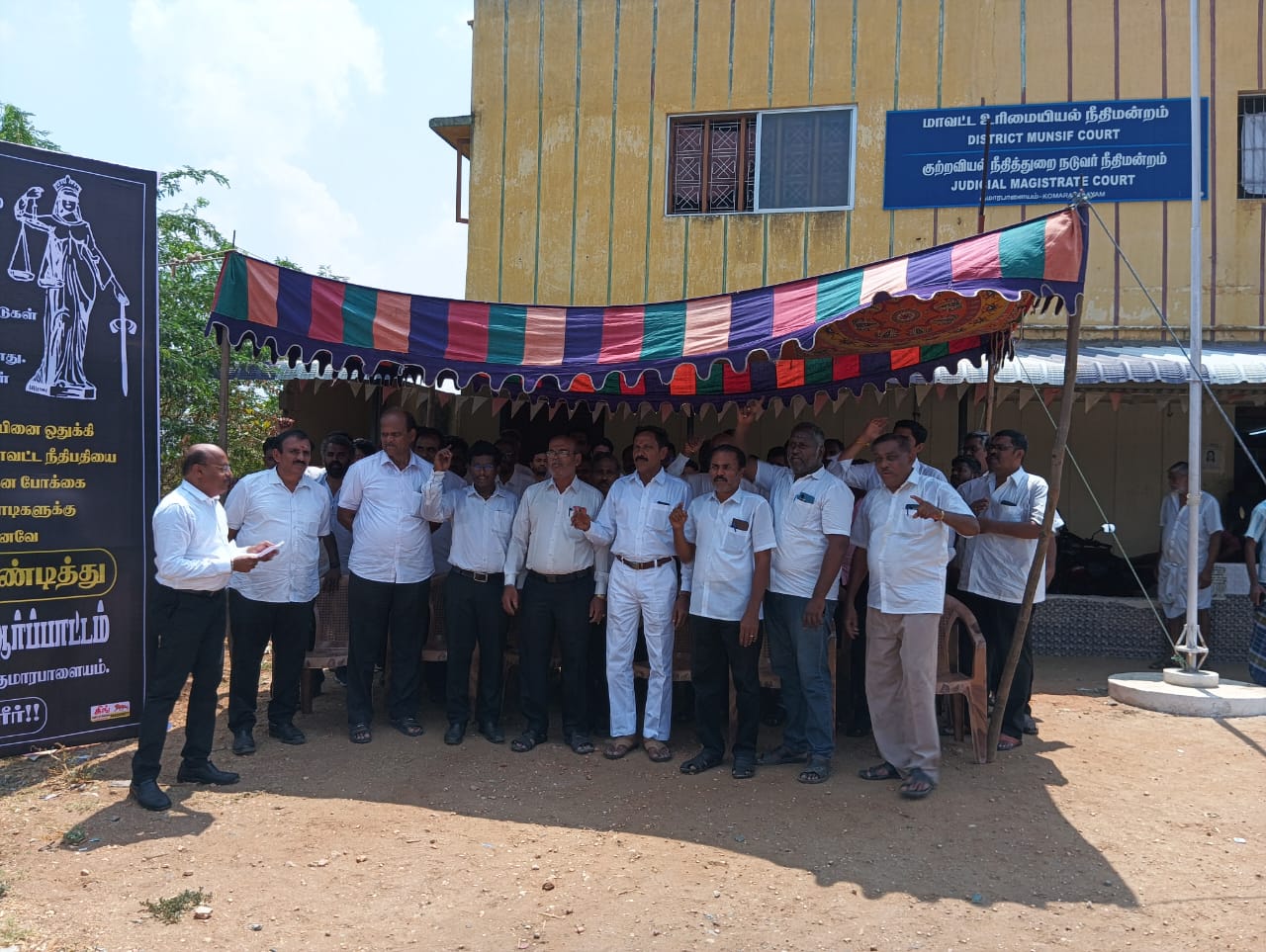 பலமுறை மாவட்ட நீதிபதியிடம் கேட்டும் பலனில்லை. நீதிமன்றத்திற்கு தேவையான பணிகளை மட்டும் செய்து கொள்கிறர்கள். எங்கள் கோரிக்கைகளை ஏற்க மறுப்பதுடன், உயர்நீதிமன்றம் உத்திரவிட்டாலும், உங்கள் கோரிக்கை நிறைவேற்ற முடியாது, உங்களால் ஆனதை பார்த்து கொள்ளுங்கள் என்று மாவட்ட நீதிபதி குணசேகரன் கூறினார்.