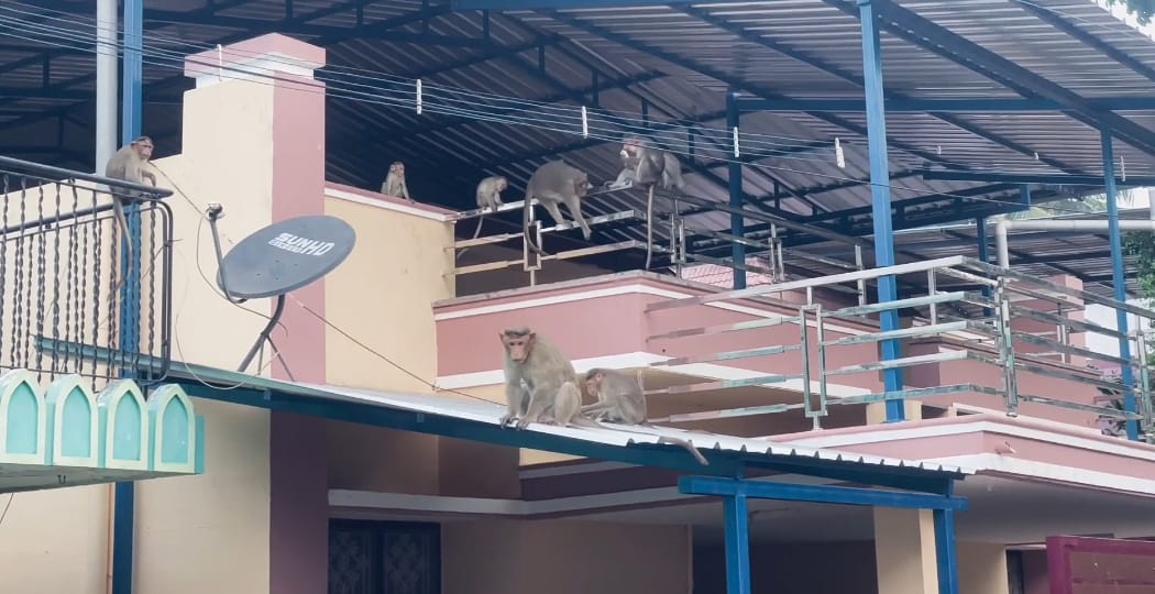 பாபநாசம் அருகே மேலவழுத்தூர் குடியிருப்பு பகுதிகளில் அட்டகாசம் செய்யும் குரங்குகள். அசம்பாவிதங்கள் நடைபெறுவதற்கு முன்பு..