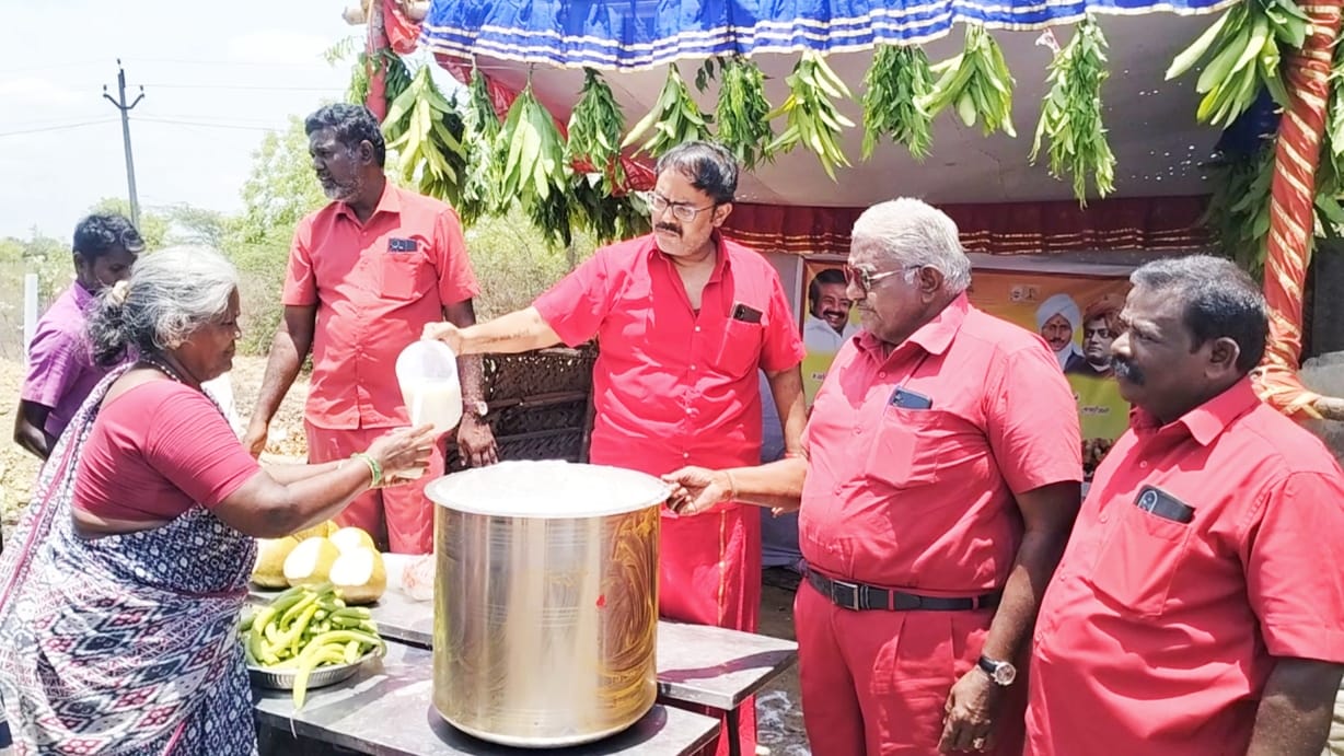 தண்ணீர் பந்தல் திறந்து அங்கு வரும் பொது மக்களுக்கு இளநீர், மோர், தர்பூசணி,வெள்ளரிக்காய், நுங்கு, உள்ளிட்டவைகளை ஆன்மீக இயக்க தொண்டர்கள் வழங்கி வருகின்றனர்.