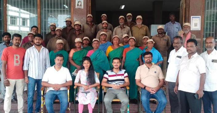 திருப்பூர் மாநகராட்சி ஆணையாளர் பவன்குமார் ஜி கிரியப்பனவர் தலைமையில் மைய அலுவலக வளாகத்தில் உழைப்பாளர் தினத்தை முன்னிட்டு இனி ஒரு விதி செய்வோம் குழுவின் சார்பாக கவிதா ஜனார்த்தனன் தூய்மை பணியாளர்களுக்கு இனிப்புகள், தொப்பி மற்றும் கையுறை (Gloves) ஆகியவற்றை வழங்கினார்கள். உடன் மாநகர நல அலுவலர் கெளரி சரவணன் உட்பட பலர் உள்ளனர்.