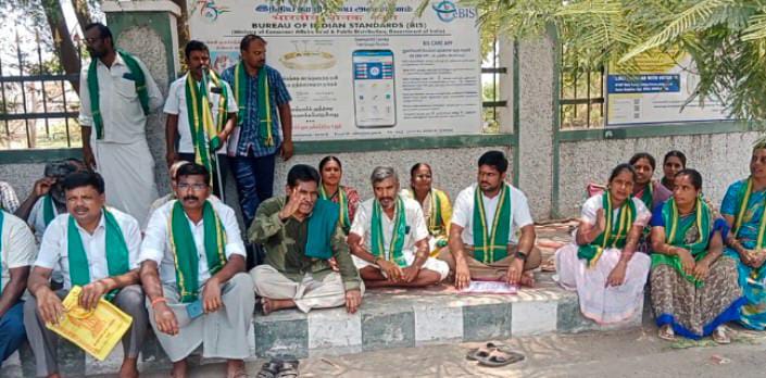 திருப்பூர் மாவட்டம். கலெக்டர் அலுவலகம் முன் விவசாயிகள் பாதுகாப்பு சங்கம் சதீஷ்குமார் தலைமையில் வழக்கு பதிவு செய்யக்கோரி தொடர் உண்ணாவிரதம் போராட்டம்