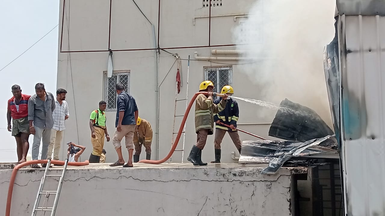 இதனையடுத்து குடோனில் இருந்து புகை வெளியேறுவதை உணர்ந்த பணியாளர்கள் ஓடி வந்து காலணி கடை உரிமையாளரிடம் கூறியுள்ளனர். இதனையடுத்து விஜயா மெட்டல் உரிமையாளரிடம் நடந்ததை கூறி குடோன் சாவியை கேட்டுள்ளனர். குடோனை திறக்க சென்ற போது தீ கொழுந்து விட்டு எரிந்துள்ளது