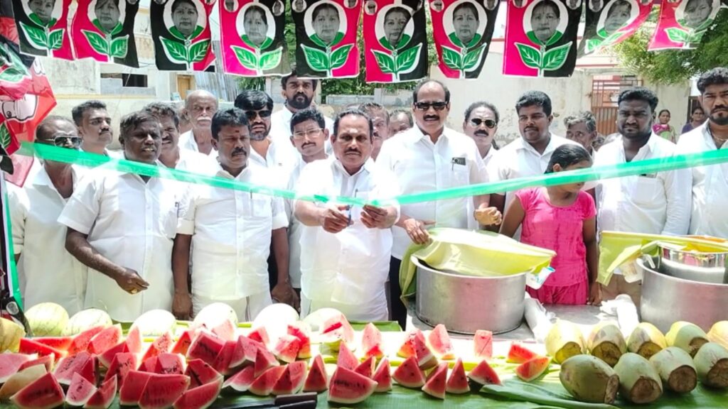 கோடை வெயிலின் தாக்கத்திலிருந்து தங்களை தற்காத்துக் கொள்ள பொதுமக்களுக்கு பயன்படும் வகையில் அதிமுக சார்பில் நீர் மோர் பந்தலை அமைத்திட வேண்டுமென அதிமுக பொதுச் செயலாளரும் முன்னாள் முதலமைச்சருமான எடப்பாடி பழனிசாமி உத்தரவிட்டிருந்தார்.