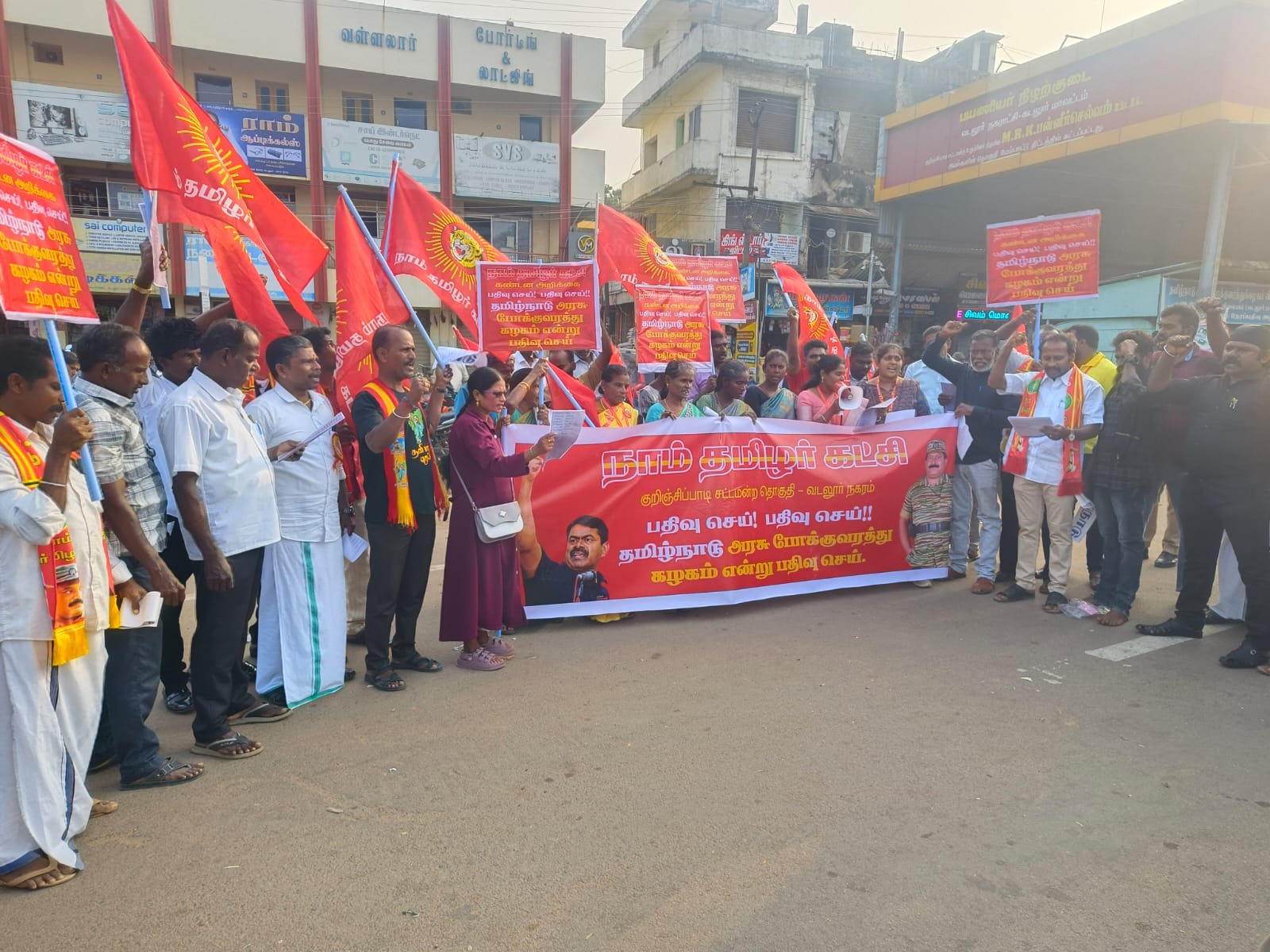 வடலூர் பஸ் நிலைய பகுதியி அனுமதியின்றி பஸ்களில் ஸ்டிக்கர் ஒட்ட அக்கட்சியினர் திரண்டனர். கட்சியின் மாநில ஒருங்கிணைப்பாளர் இன்பெண்டா சாவித்திரி உள்ளிட்ட, 8 பெண்கள் உட்பட 38பேரை போலீசார் கைது செய்தனர். அனைவர் மீதும் வழக்குப் பதிந்த போலீசார் பின்னர் விடுவித்தனர். முன்னதாக,போக்குவரத்து கழகங்களில் தமிழ்நாடு அரசு என்கிற பெயர் நீக்கத்தை கண்டித்து கண்டன, ஆர்ப்பாட்டம் நடைபெற்றது.