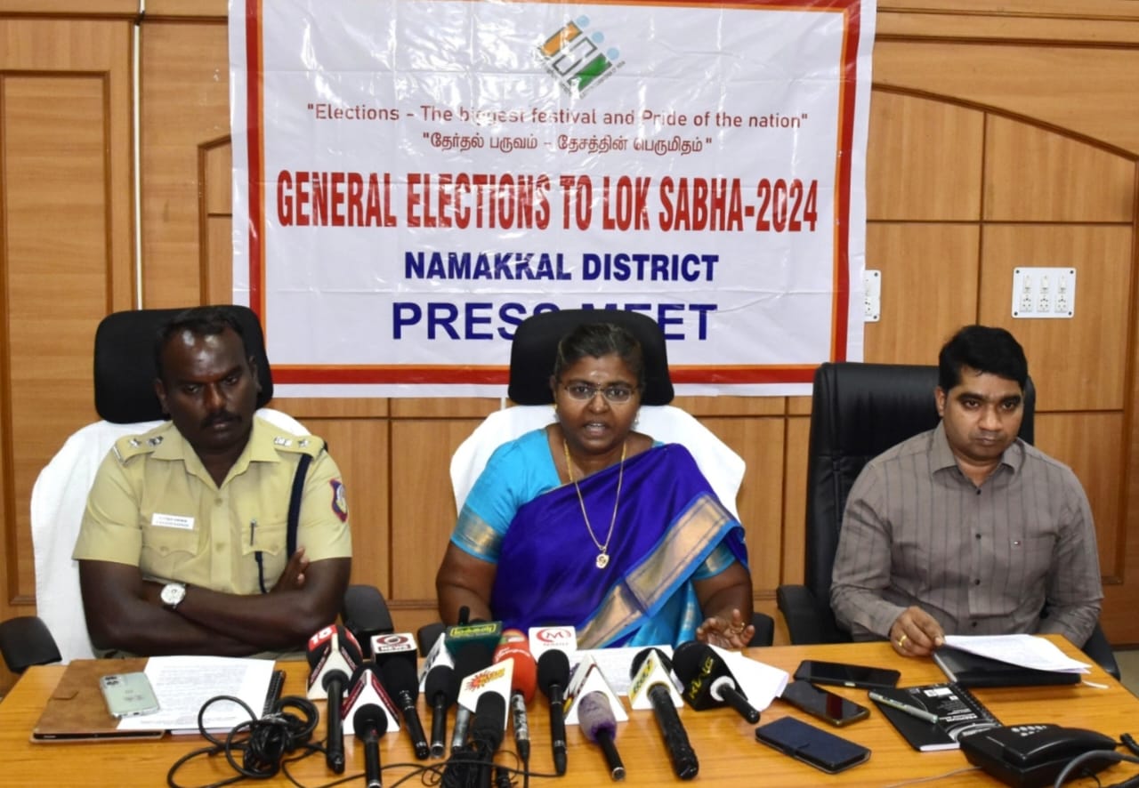 மக்களவைப் பொதுத்தேர்தல் – 2024 வாக்கு எண்ணும் மையம் பாதுகாப்பு குறித்து நாமக்கல் மாவட்ட ஆட்சித் தலைவர் செய்தியாளர்கள் சந்திப்பு.