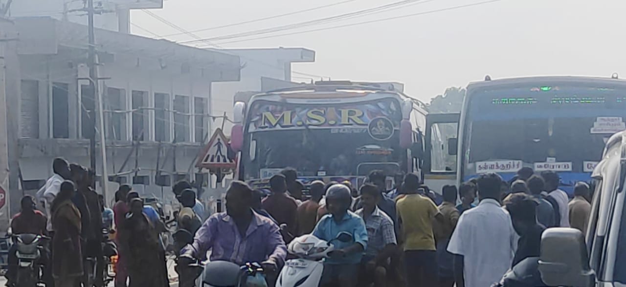 திருச்செங்கோடு ஈரோடு சாலையில் சந்தைப்பேட்டை பகுதியில் அரசு மற்றும் தனியார் பேருந்துகள் நிற்காமல் செல்வது வாடிக்கையாக இருந்து வந்தது பொதுமக்கள் போக்குவரத்து துறையில் புகார் கூறியும் பேருந்துகள் நிற்காமல் சென்றதால் இன்று காலை சந்தைப்பேட்டை பகுதியில் தனியார் மற்றும் அரசு பேருந்தினை அப் பகுதி பொதுமக்கள் தடுத்து நிறுத்தி வாக்குவாதத்தில் ஈடுபட்டனர்.