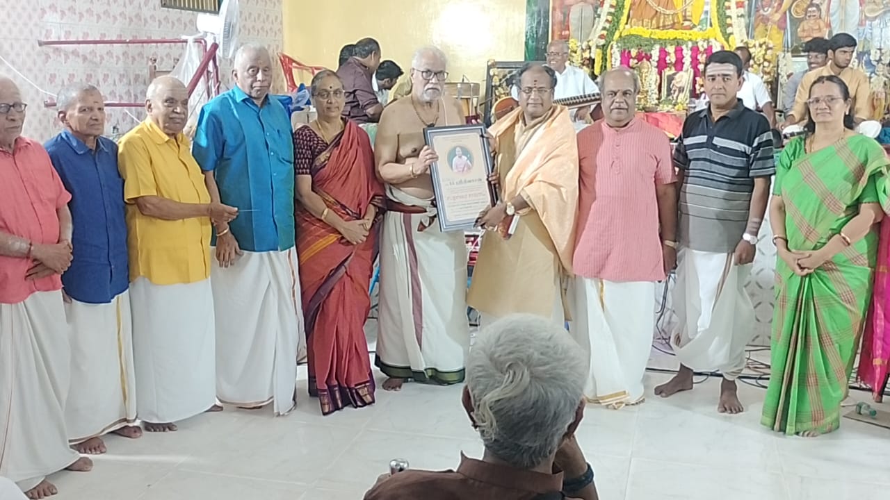 “சப்தஸ்வர சாம்ராட் ” என்ற பட்டத்தினை குழு நிர்வாக தலைவர் ஹரிஹரன் மற்றும் குழுவினரால் வழங்கி சால்வை அணிவித்து கௌரவிக்கப்பட்டது.