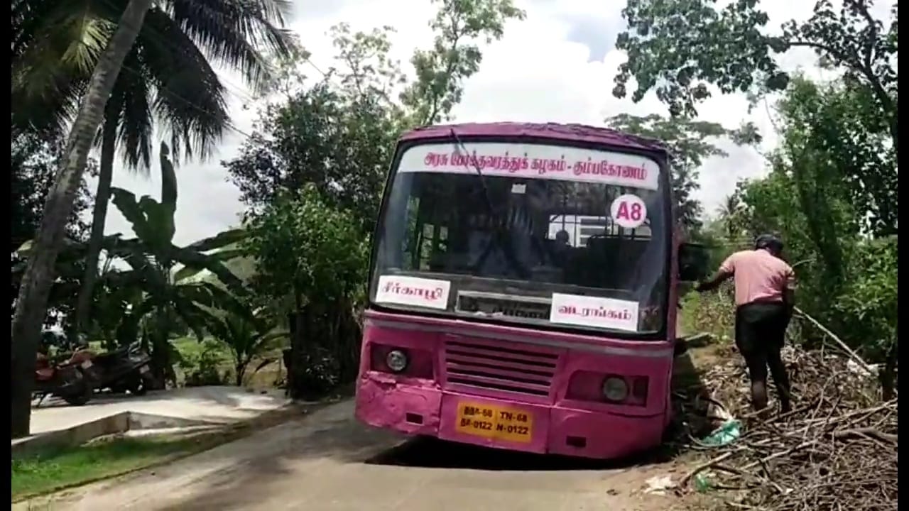 இந்நிலையில் வடரங்கத்தில் இருந்து சீர்காழி நோக்கி A8 என்ற அரசு பேருந்து பணகாட்டாங்குடி பகுதியில் பயணிகளை ஏற்றிக்கொண்டு வந்தது. அப்போது எதிர்பாராத விதமாக அரசு பேருந்தில் வலது புற முன் சக்கர கழண்டு பேருந்துக்கு முன்னே தனியாக சாலையில் ஓடி உள்ளது.