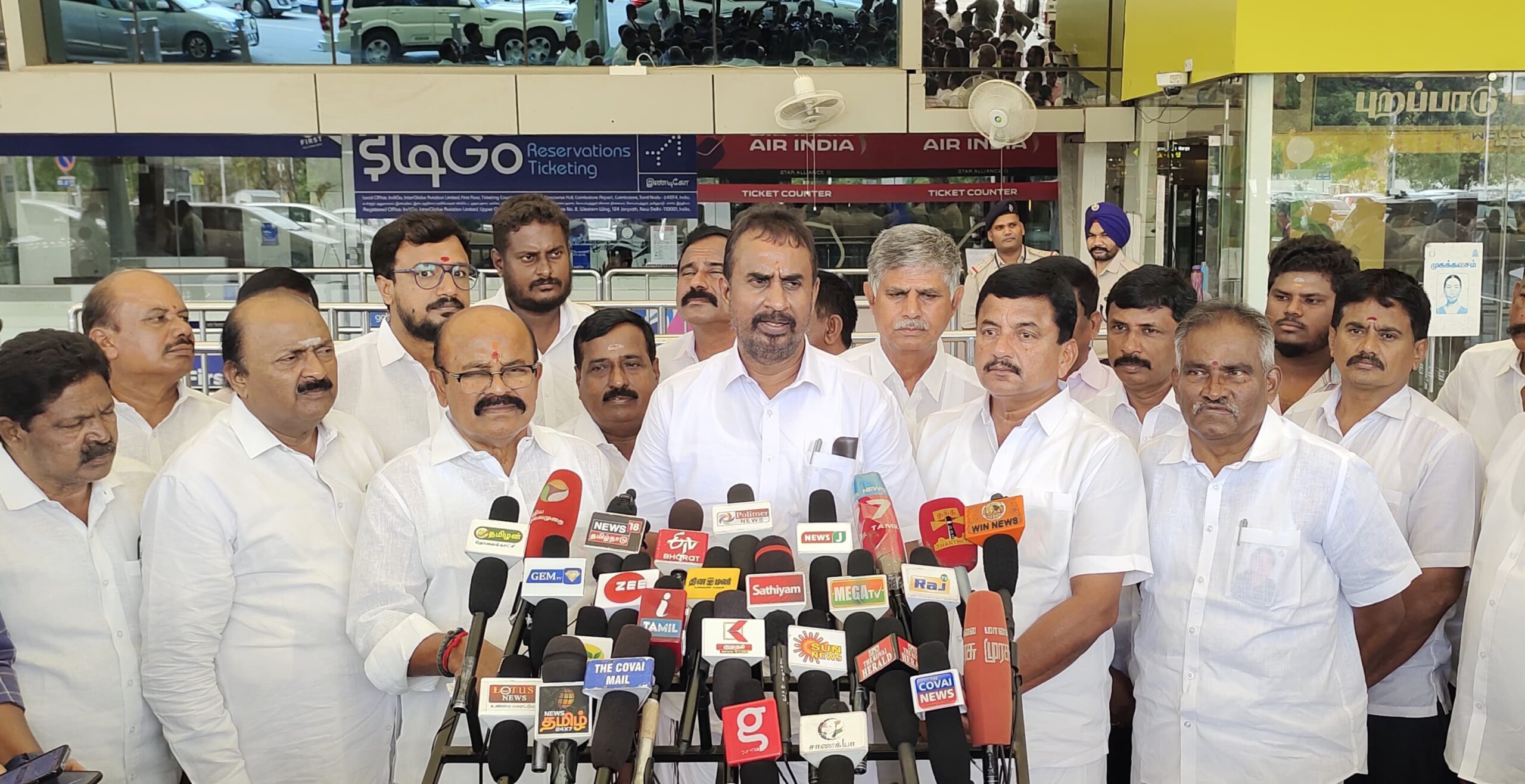 அதிமுக தலைமை நிலைய செயலாளர், எஸ் பி வேலுமணி கோவை விமான நிலையத்தில் இன்று செய்தியாளர்களை சந்தித்தார்.