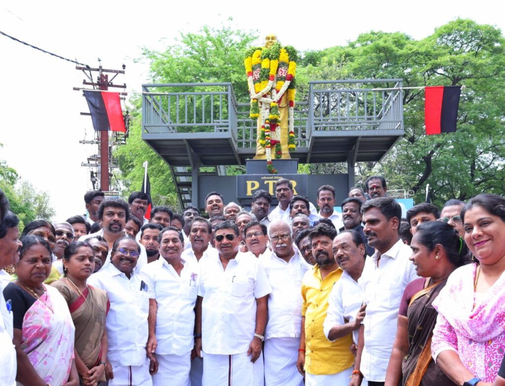 மதுரையில் முன்னாள் இந்து சமய அறநிலை யத் துறை அமைச்சரும்,தமிழ்நாடு சட்டப்பேரவை அவைத் தலைவருமான பி.டி.ஆர் பழனிவேல் ராஜனின் 18-வது நினைவு தினத்தை முன்னிட்டு அவரது உருவச் சிலைக்கு தகவல் தொழில் நுட்பவியல் துறை அமைச்சர் பழனிவேல் தியாகராஜன், மதுரை மாநகராட்சி மேயர் இந்திராணி மற்றும் மாநகர் மாவட்ட கழக செயலாளர் கோ. தளபதி எம்.எல்.ஏ., உள்ளிட்ட கழக நிர்வாகிகள் மாலை அணிவித்து மரியாதை செலுத்தினர்.