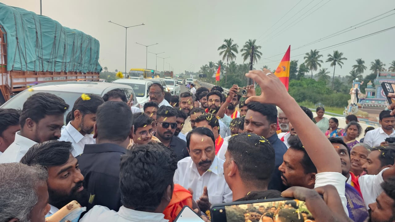 திருப்பூர் மாவட்டம், தாராபுரம் :தமிழக வெற்றி கழகத்தின் திருப்பூர் கிழக்கு மாவட்டம், தாராபுரம்–காங்கயம் செயல்வீரர்கள் கூட்டம் தாராபுரத்தில் நடைபெற்றது. இந்த கூட்டத்தில் பங்கேற்க வந்த மேற்கு மண்டல அமைப்புச் செயலாளர் செங்கோட்டையன் அவர்களுக்கு, தாவேக வடக்கு ஒன்றிய செயலாளர் ஸ்ரீகாந்த் தலைமையில் கழகத்தினர் உற்சாக வரவேற்பு அளித்தனர்.
