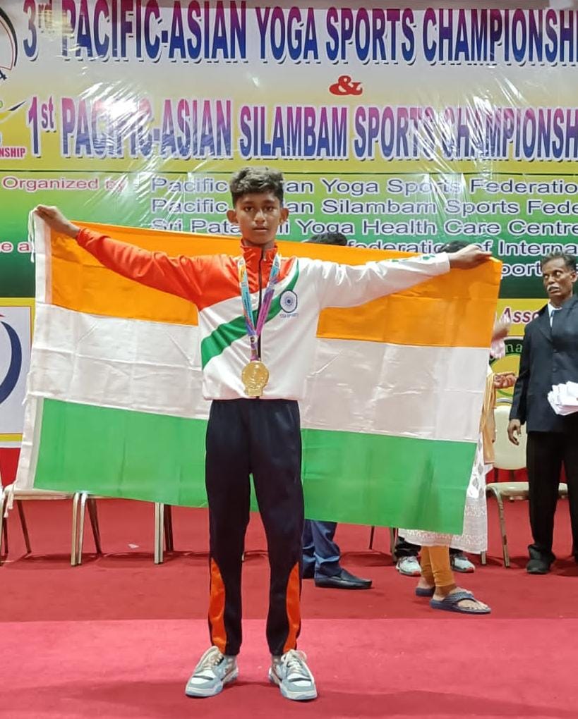 யோகா போட்டியில் சொக்கம்பட்டி மாணவனுக்கு தங்கப்பதக்கம்;-