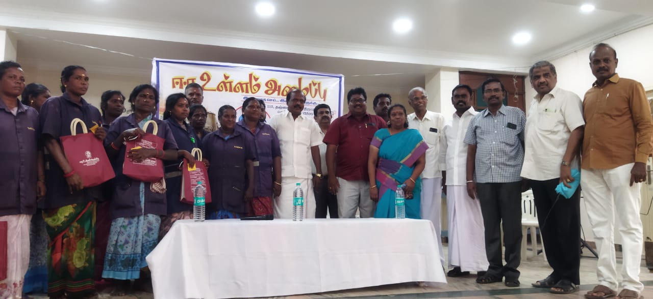சுமார் 200க்கும் மேற்பட்ட. தூய்மை பணியாளர்களுக்கு அசைவ உணவுடன் அவர்கள் அன்றாடம் பயன்படுத்தும. அத்தியாவசிய. பொருள்களான குளியல் சோப் மற்றும் வாஷிங் சோப் கையுறை உள்ளிட்ட பொருட்களை வழங்கி சால்வை அணிவித்து கௌரவப்படுத்தினர்