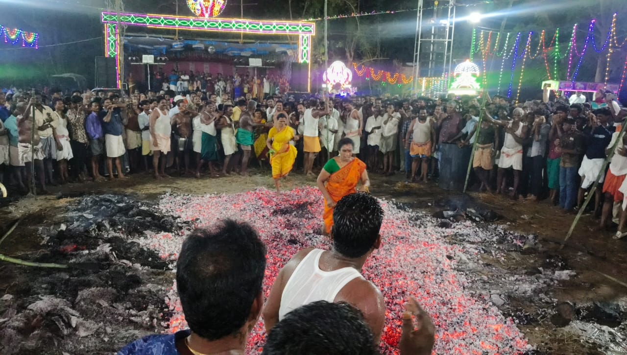 அந்த வகையில் இந்த வருட தீமிதி திருவிழாவை முன்னிட்டு கடந்த வாரம் கொடியேற்றத்துடன் தொடங்கி ஒவ்வொரு நாளும் ஒவ்வொரு உற்சவம் நடைபெற்று வந்தது இந்த நிலையில் இன்று விழாவின் முக்கிய நிகழ்வாக தீமிதி திருவிழா வெகு விமர்சையாக நடைபெற்றது. மகா மாரியம்மன் மகா காளியம்மன் காத்தவராயன் சாமிக்கு சிறப்பு அலங்காரம் செய்யப்பட்டு வீதி உலா காட்சி நடைபெற்றது. ஒவ்வொரு வீட்டிலும் சாமிக்கு அர்ச்சனைகள் செய்து வழிபட்டனர் சாமிக்கு முன்னதாக கோலாட்டம் கரகாட்டம் கேரள செண்டை மேளம் ஆகியவை அடித்து நடனத்துடன் ஊர்வலமாக வந்தனர்.