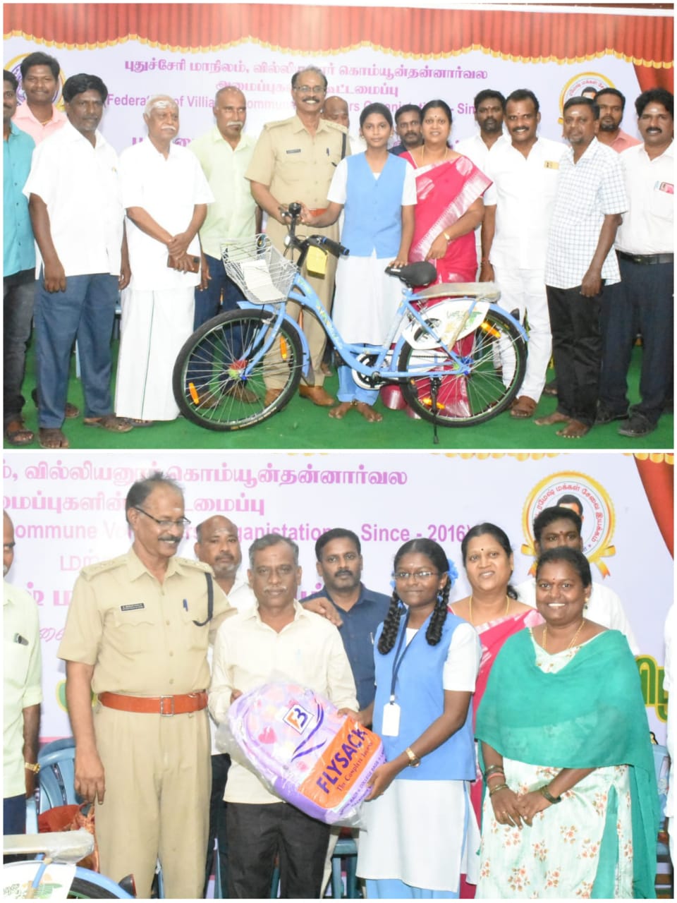 அரசு மற்றும் அரசு உதவி பெறும் பள்ளிகள் அளவில் வில்லியனூர் கொம்யூன் அளவில் SSLC பொதுத் தேர்வில் முதல் மதிப்பெண் பெற்ற வில்லியனூர் புனித லூர்து அன்னை அரசு உதவி பெறும் பெண்கள் உயர்நிலைப்பள்ளி மாணவிகக்கு சைக்கிள் பரிசாக வழங்கப்பட்டது