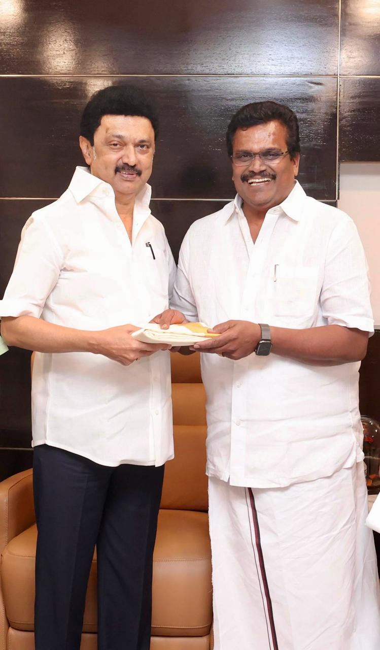 சென்னை அண்ணா அறிவாலயத்தில் நடைபெற்ற மாவட்ட செயலாளர்கள் கூட்டத்தில் பங்கேற்ற தேனி வடக்கு மாவட்ட செயலாளரும் தேனி பாராளுமன்ற தொகுதி வேட்பாளருமான தங்க தமிழ்ச்செல்வன் தமிழக முதல்வர் மு க ஸ்டாலின் அவர்களை சந்தித்து புத்தாடை வழங்கி ஆசி பெற்றார்