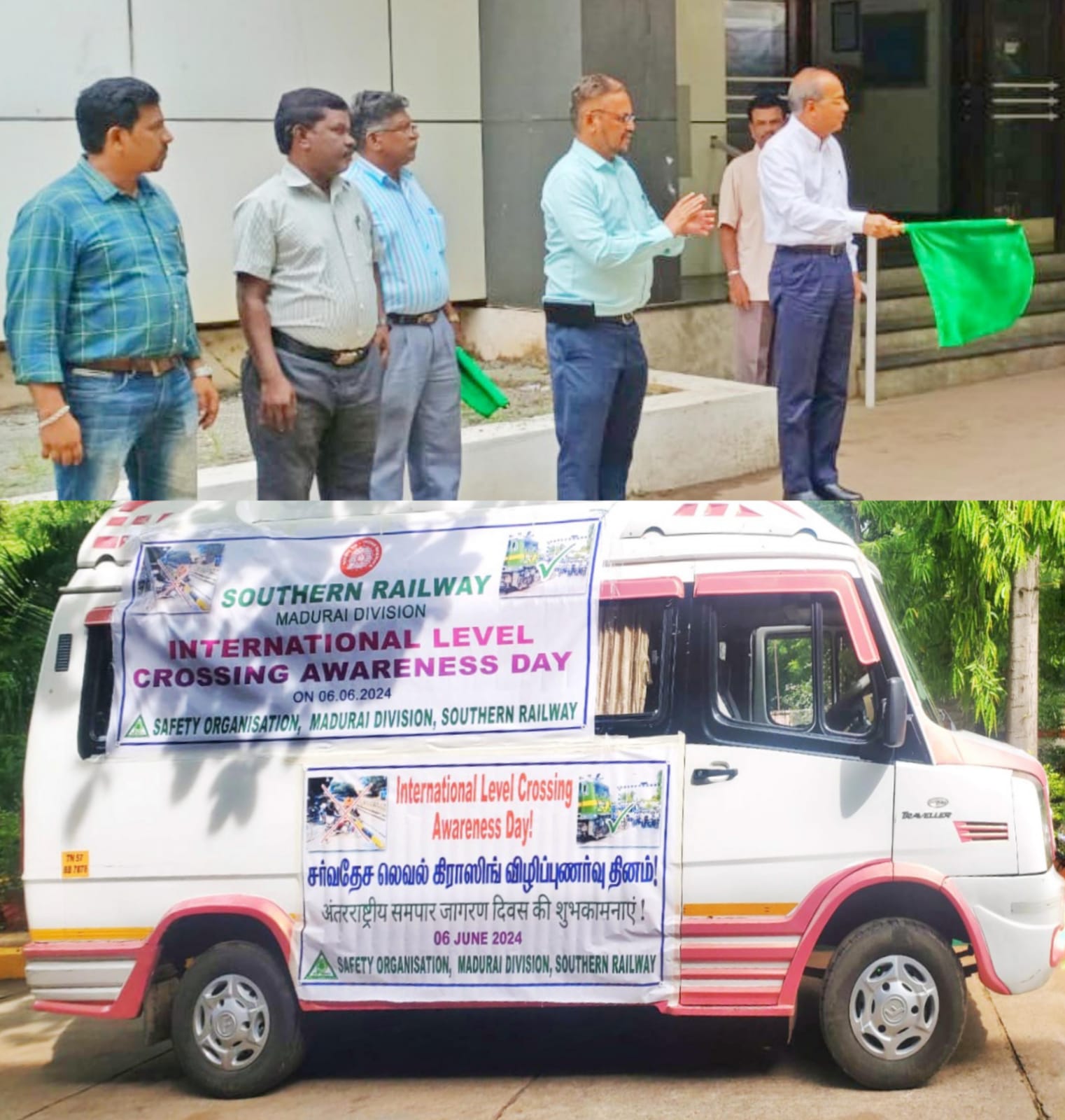 சர்வதேச லெவல் கிராசிங் விழிப்புணர்வு தினம் (ILCAD) தொடர்பாக, முதல் மதுரை கோட்டம் தெற்கு ரயில்வே முக்கிய பொது இடங்களில் விழிப்புணர்வு நிகழ்ச்சிகளை நடத்துகிறது.