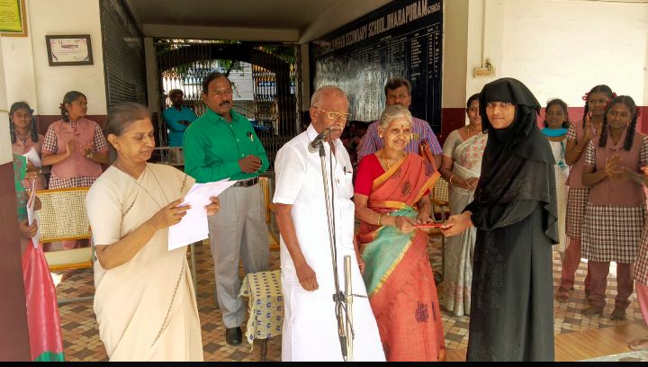 மேலும் புதிய புத்தகங்கள் புதிய பேக்குகள், பென்சில் பேனா என புதிய பொருட்களோடு மாணவர்கள் உற்சாகமுடன் பள்ளிக்கு திரும்பி உள்ளனர்.கடந்த கல்வி ஆண்டில் பத்து, பதினொன்னு, பன்னிரண்டாம் வகுப்பில் முதல் மூன்று நல்ல மதிப்பெண்கள் பெற்ற மாணவிகளுக்கு அரிமா கிளப் செயலாளர் மற்றும் ரியல் எஸ்டேட் தொழில் செய்து வருபவர் திரு.ரத்ன சபாபதி மகன் விவேகானந்தம் நினைவாக முதல் மதிப்பெண்கள் பெற்ற மாணவிகளுக்கு தலா 5000 ரூபாயும்,இரண்டாம் மதிப்பெண்கள் பெற்ற மாணவிகளுக்கு தலா ரூபாய் 4000 ரூபாயும்,மூன்றாம் மதிப்பெண்கள் பெற்ற மாணவிகளுக்கு தலா 3000 வழங்கி சிறப்பித்தார்.