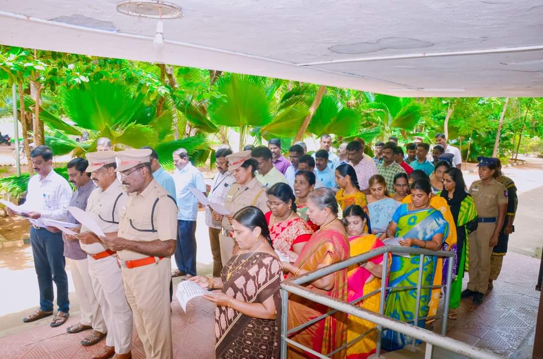 திண்டுக்கல் மாவட்ட காவல் அலுவலகத்தில் இன்று (12.06.2024) மாவட்ட காவல் கண்காணிப்பாளர் மருத்துவர் அ.பிரதீப் தலைமையில், “குழந்தைத் தொழிலாளர் முறையினை அகற்றுவதற்கான உறுதிமொழி” ஏற்பு நிகழ்ச்சி நடைபெற்றது. இந்நிகழ்ச்சியில் காவல் அலுவலக அமைச்சு பணியாளர்கள் மற்றும் காவலர்கள் கலந்து கொண்டனர்.