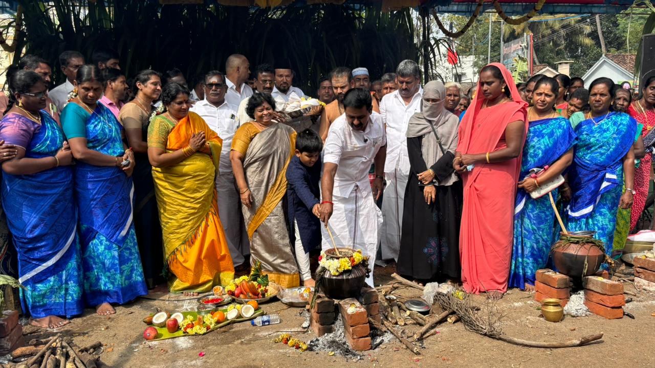 முன்னதாக பசு மாடுகளுக்கு கோ பூஜை செய்து, குத்துவிளக்கு ஏற்றி, செங்கல் அடுப்பில் மண் பானை வைத்து, பொங்கல் பானையில் மஞ்சள், இஞ்சி கொத்து கட்டப்பட்டு, பானைகளுக்கு திலகமிட்டு அடுப்பில் வைத்து தீ மூட்டி பொங்கலிட்டனர். இதில் நன்னிலம் சட்டமன்ற தொகுதியில் உள்ள 250 க்கும் மேற்பட்ட குடும்பத்தினரும் இருபுறங்களிலும் கரும்பு, தோரணம் கட்டப்பட்டு பொங்கலிட்டனர். அதனைத் தொடர்ந்து விவசாயத்திற்கும், உயிர்களுக்கும் ஆதாரமான சூரிய பகவானுக்கு சூடம் ஏற்றி நன்றி தெரிவிக்கும் ஒரு சூரிய வழிபாடு செய்தனர்.