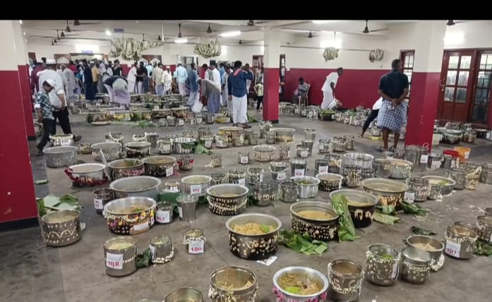திருவாரூா் கொடிக்கால்பாளையம் முஹ்யித்தீன் ஆண்டவா்கள் பள்ளிவாசலில் மதநல்லிணக்க பாச்சோற்று பெருவிழாவில் ஆயிரக்கணக்கானோர் பங்கேற்றனர் .