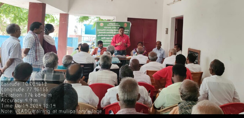 சோழவந்தான் அருகே முள்ளிப்பள்ளம் கிராமத்தில் தமிழக அரசின் கலைஞரின் அனைத்து கிராம.ஒருகிணைந்த விவசாயிகள் வளர்ச்சி திட்டத்தின் கீழ் கிராம வேளாண் முன்னேற்ற குழ கரீப் விவசாயிகளளூக்கு பயிற்சி முகாம் ஊராட்சி மன்ற தலைவர் பழனிவேல் மற்றும் துணை தலைவர் ராஜா ஆகியோர் தலைமையில் நடந்தது.