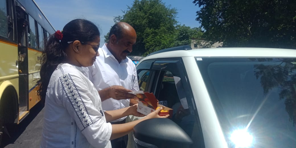 திருப்பூர் மாவட்டம் பல்லடத்தையடுத்த சுல்தான்பேட்டை பகுதியை சேர்ந்தவர் வள்ளி கனகராஜ் மற்றும் உதயபானு தம்பதியினர். சமூக ஆர்வலரான இவர் தனது திருமண நாளை முன்னிட்டு பல்லடம் நான்கு வழி சாலை, பேருந்து நிலையம் உள்ளிட்ட பகுதிகளில் நான்கு சக்கர வாகனத்தில் சீட் பெல்ட் அணிந்து வருபவர்களுக்கும் இருசக்கர வாகனத்தில் தலை கவசம் அணிந்து வருபவர்களுக்கும் இனிப்பு வழங்கி தனது திருமண நாளை கொண்டாடினார். மேலும் இந்நிகழ்ச்சி பல்லடம் போக்குவரத்து காவலர்கள் முன்னிலையில் நடைபெற்றது.