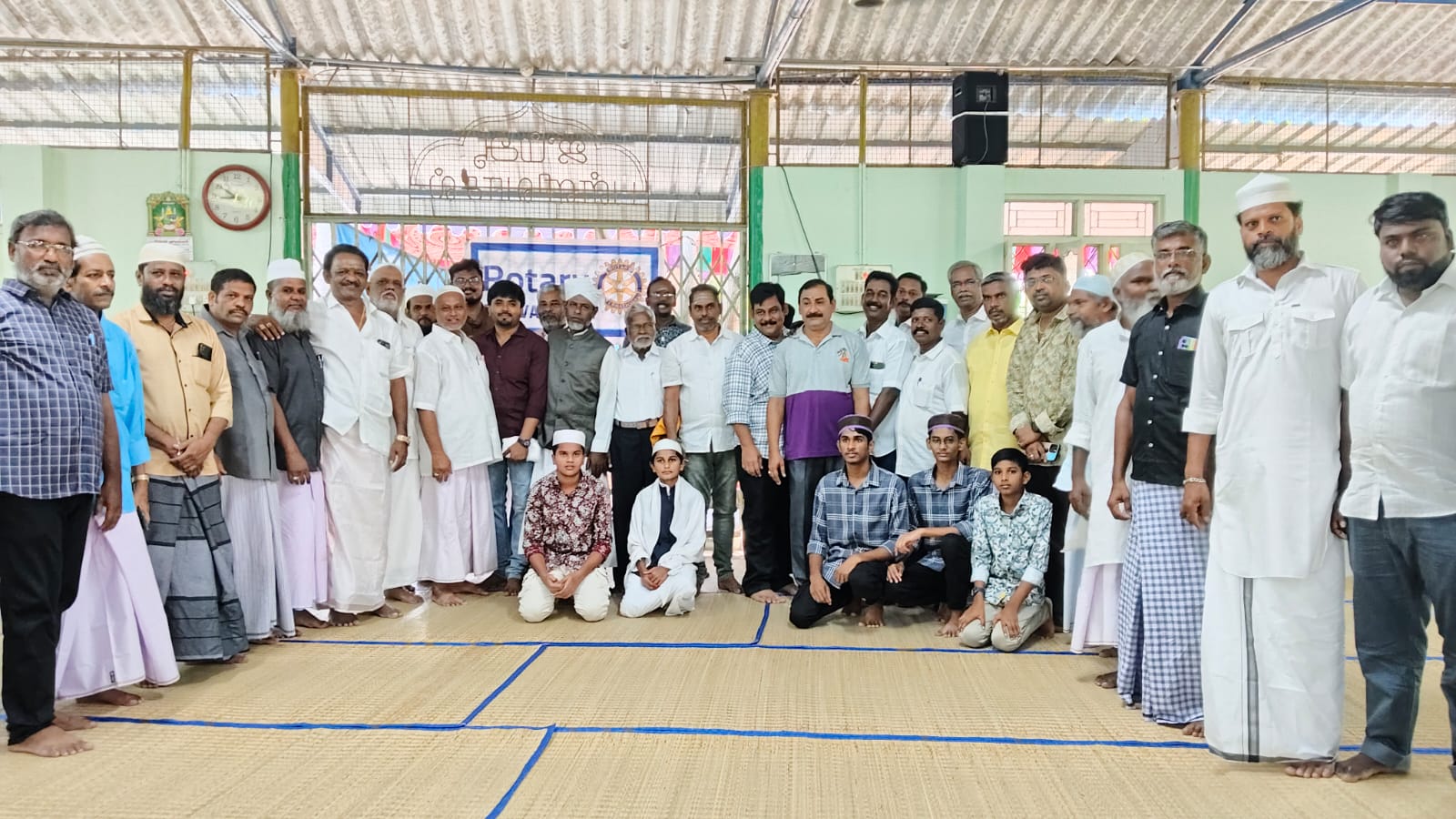 மேலும் தொழுகை முடிந்து வெளியில் வந்த இஸ்லாமியர்களுக்கு புவனகிரி ரோட்டரி சங்கம் சார்பில் இனிப்பு வழங்கப்பட்டது இதனை எடுத்து பள்ளிவாசல் நிர்வாகம் சார்பில் ரோட்டரி சங்க நிர்வாகிகளுக்கு சால்வை அணிவித்து கௌரவிக்கப்பட்டது தொழுகையில் ஏராளமான இஸ்லாமியர்கள் கலந்து கொண்டனர்