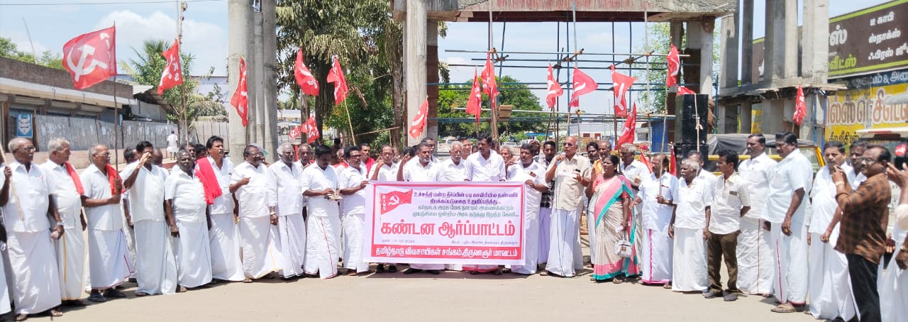சாமி நடராஜன் கோரிக்கை விளக்கி கண்டன உரையாற்றினார் ஆர்ப்பாட்டத்தில் சிபிஎம் மாவட்ட செயலாளர் ஜி.சுந்தரமூர்த்தி விவசாய தொழிலாளர் சங்கத்தின் மாவட்ட செயலாளர்