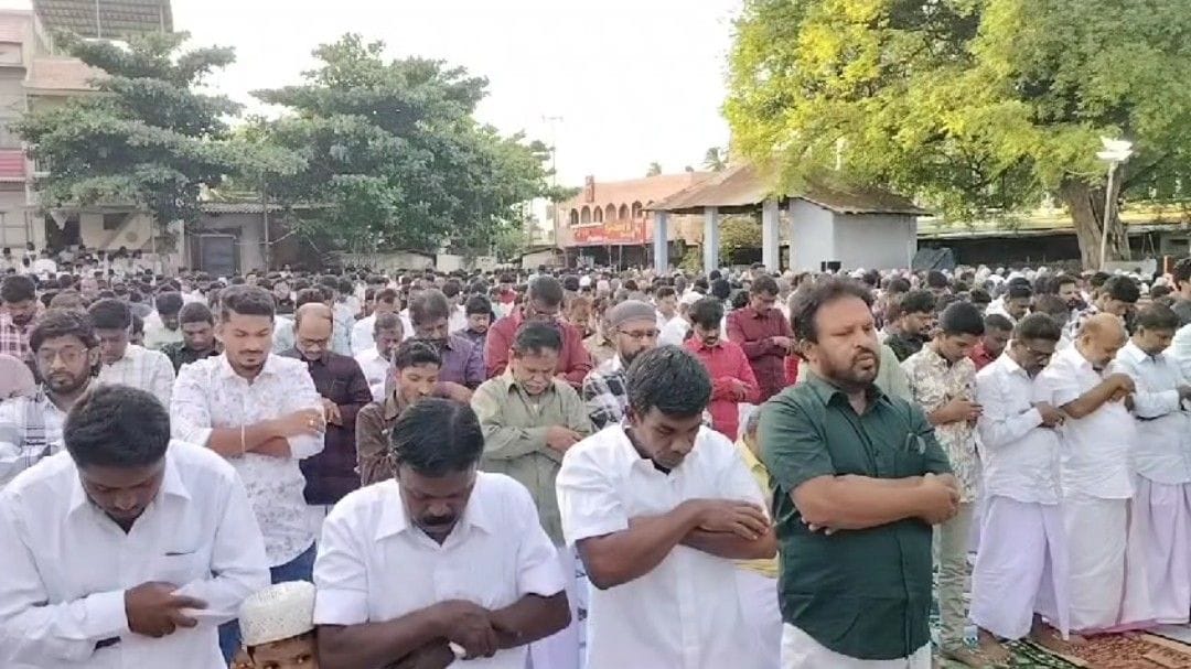 இதில் பிரமாண்டமாக காயிதே மில்லத் திடல் முழுவதும் நிறைந்தது அதன் பின்னர் அருகே உள்ள பெரியதெரு, புதுத்தெரு ,மணிக்கூண்டு ஆகிய இடங்களிலும் தொழுதனர் இதில் அதிகாலை 6 மணி முதலே இஸ்லாமியர்கள் ஆண்களும், பெண்களும் மற்றும் சிறுவர்,சிறுமியர்களும் குளித்து விட்டு நறுமணம் பூசி தொழுகைக்காக காயிதே மில்லத் திடல் நோக்கி வரத் தொடங்கினர். சரியாக 6.30 மணியளவில் மாநில பேச்சாளர் அப்துர் ரஹ்மான் ஃபிர்தவ்ஸி , தலைமை ஏற்று பெருநாள் சிறப்பு தொழுகையை நடத்தினார்.