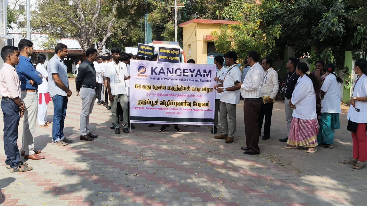 திருப்பூர் மாவட்டம் காங்கேயம் தாலுக்கா, நத்தக்காடையூரில் உள்ள காங்கேயம் மருந்தியல் மற்றும் ஆராய்ச்சிக் கல்லூரியின் 64 வது தேசிய மருந்தியல் வார விழாவின் ஒரு பகுதியாக இன்று இன்று தடுப்பூசி விழிப்புணர்வு பேரணியை காங்கேயம் அரசு மருத்துவமனையில் தொடங்கி M.S.R பல்நோக்கு மருத்துவமனையில் நடைபெற்றது.